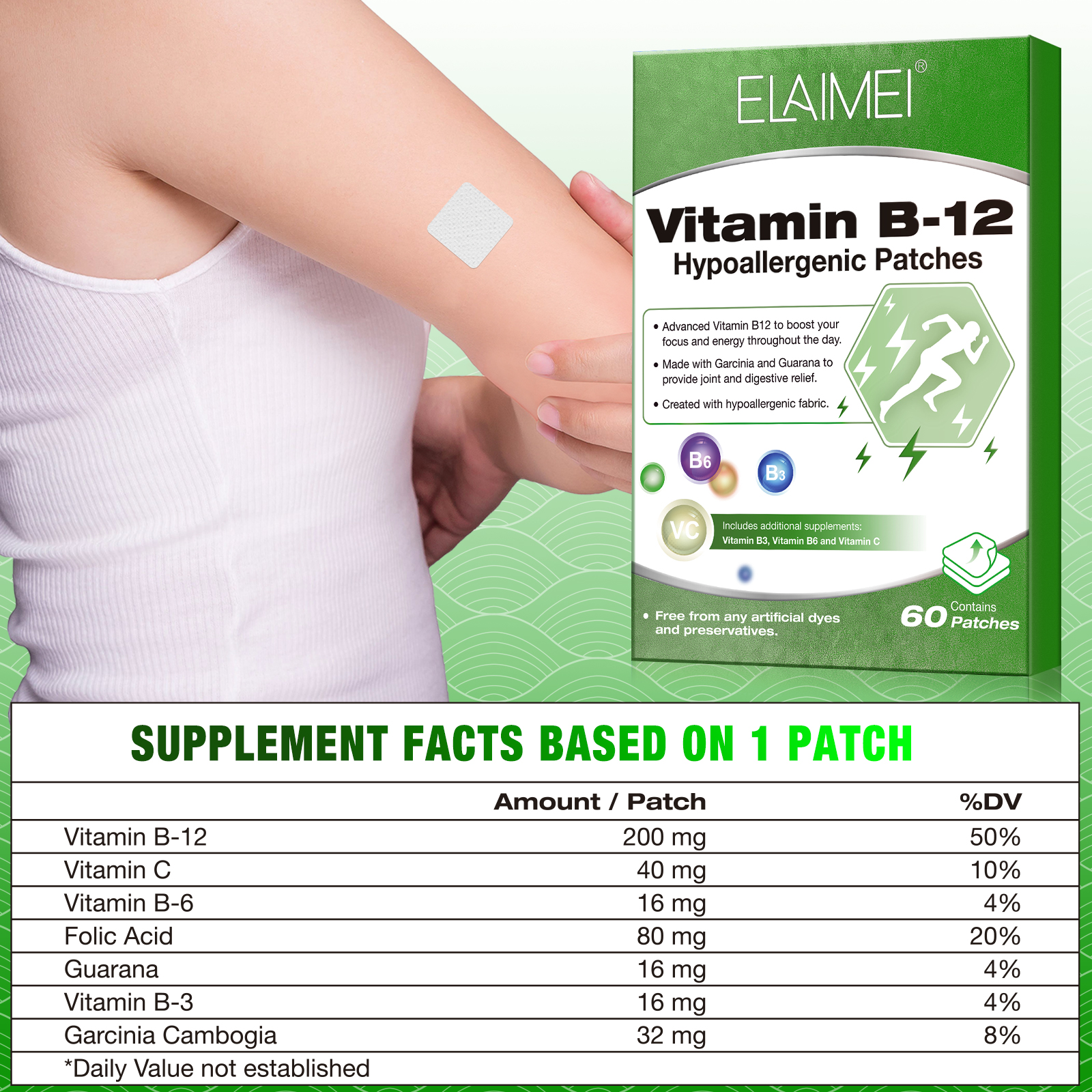 ELAIMEI Vitamin B-12 Hypoallergenic Patches