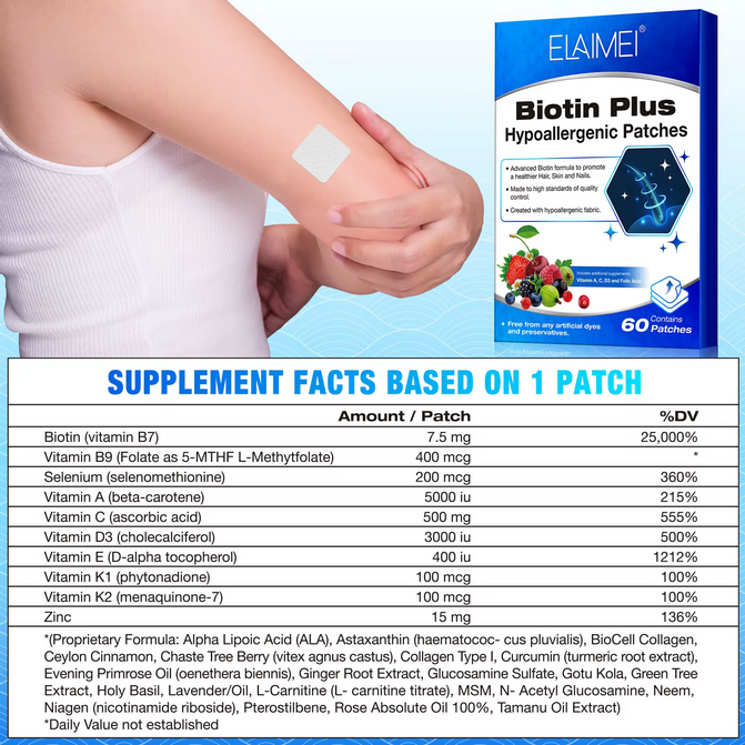 Experience the power of biotin in a gentle, skin-friendly patch with Elaimei Biotin