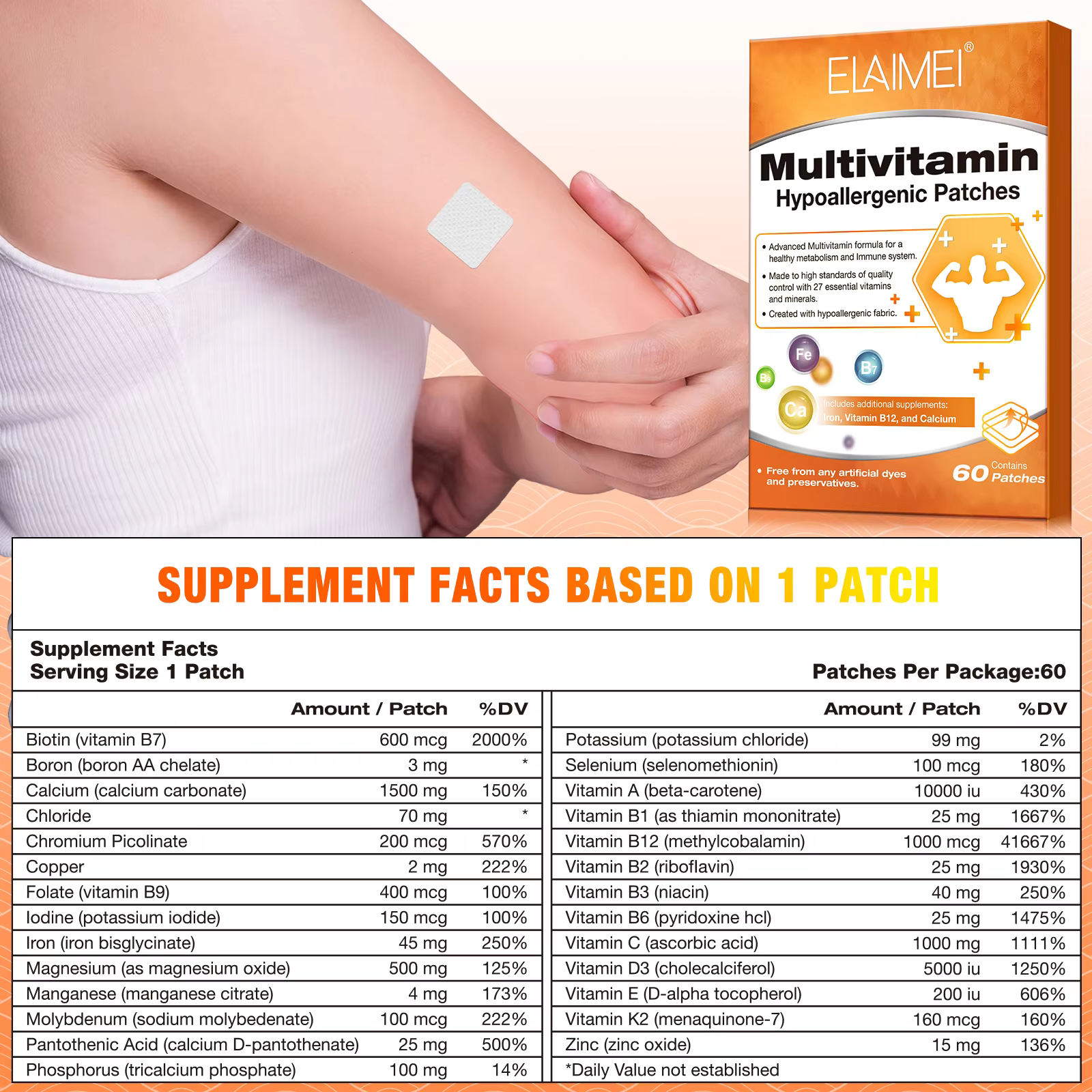 Experience the smarter way to stay healthy. Try ELAIMEI Multivitamin Patches today and unlock your full potential — because your health deserves nothing less.